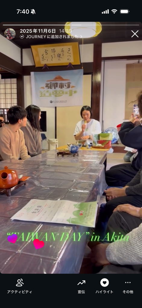 身体表現と演出の土台を深めるため、舞踏の聖地「鎌鼬(かまいたち)美術館」を訪問し、土着的で力強い身体表現の原点に触れた 。また、台湾からの学生との交流アクティビティ「台湾日」に参加。彼らによる台湾文化紹介、日本滞在時の体験報告やダンスを通じ、言葉や国を超えた繋がりを体験した 。