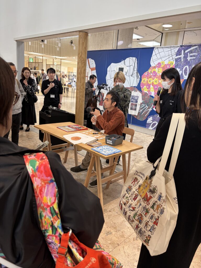 On March 29, I attended the “HERALBONY ISAI PARK 1st Anniversary FINALE” in Morioka. The venue was filled with a warm, creative energy, highlighted by a LIVE PAINT performance by Seitaro Takeuchi (Tam Tam Sha Nakayama Kobo), whose work naturally blended into the peaceful atmosphere of the day. A major highlight was the historic Talk Session featuring Sunny A. Smith (Executive Director of Creative Growth, Oakland) alongside HERALBONY’s Takaya Matsuda and Hiromi Kurosawa. They introduced their respective initiatives and philosophies.